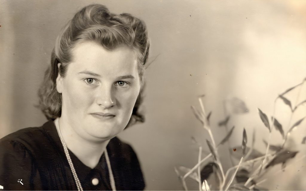 Op deze unieke na-oorlogse foto staan vlnr Trien de Lange, Anna van Bruggen, Bertha de Lange, Schoonzus Corry Koning (getrouwd met Theo de Lange) en Alie de Lange